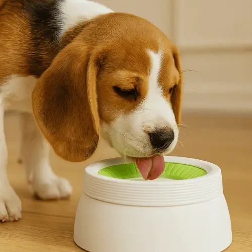 Gamelle anti-éclaboussures PetDyDy 1,1 L pour chiens et chats, conçue pour éviter les débordements et garder le sol propre et sec. Son système anti-étouffement ralentit la prise d’eau pour un confort optimal. Stable, hygiénique et facile à nettoyer, elle convient aux petits, moyens et grands chiens ainsi qu’aux chats.